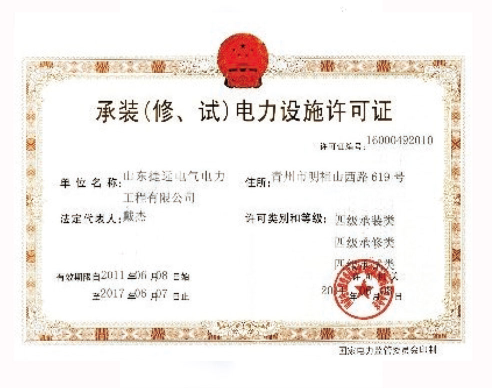 承裝(修、試)電力設(shè)施許可證